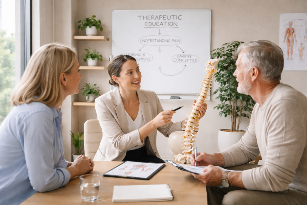 Dentro de la fisioterapia, la educación terapéutica ocupa una posición cada vez más central. El fisioterapeuta no solo interviene mediante técnicas o ejercicio, sino que actúa como facilitador del aprendizaje en salud.